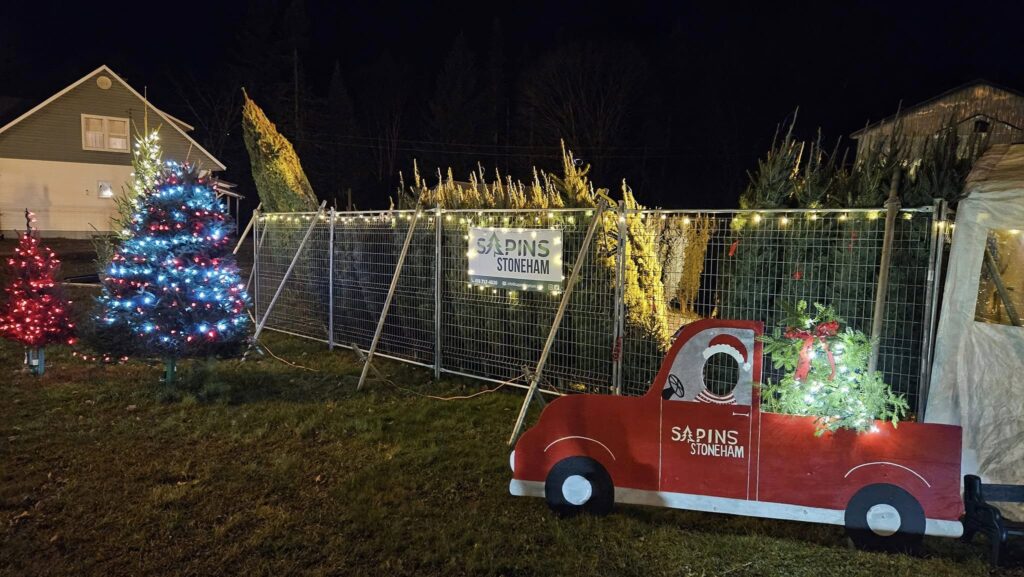 Nous sommes une famille de Stoneham passionnée par le temps des fêtes. C’est avec plaisir que nous allons vous accueillir dans une ambiance féérique. Venez nous rencontrer à notre Kiosque de vente de sapins de noël directement à l’entrée de la ville. Sapins et couronnes de qualités, de différentes gradeurs et essences.